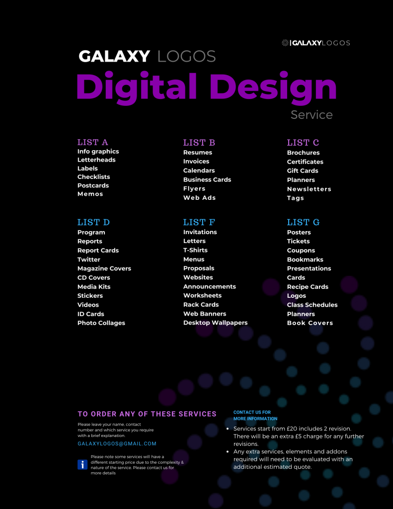 The Galaxy Logos Team: Our team have the tools and expertise in creating the essential branding materials for your business to move forward.